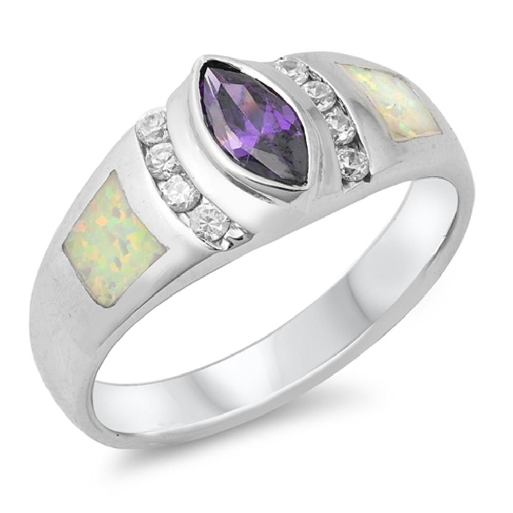 SKU: RO150002 Face Height: 9mm Stone Type: White Synthetic OpalStone Type: Purple CZMetal: 925 Sterling Silver