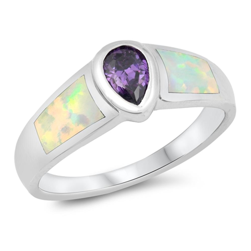 SKU: RO150117 Face Height: 8mm Stone Type: White Synthetic OpalStone Type: Purple CZMetal: 925 Sterling Silver