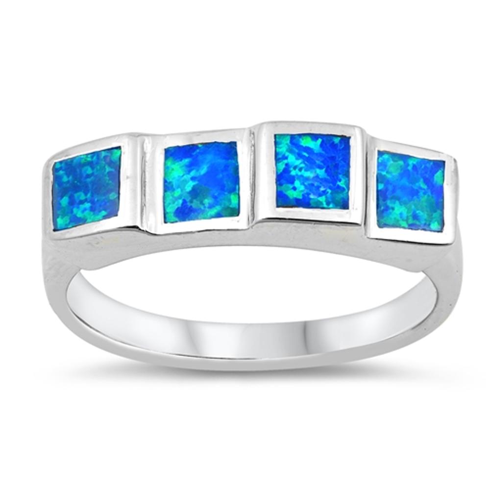 SKU: RO150126 Face Height: 6mm Band Width: 3mm Stone Type: Blue Synthetic OpalMetal: 925 Sterling Silver