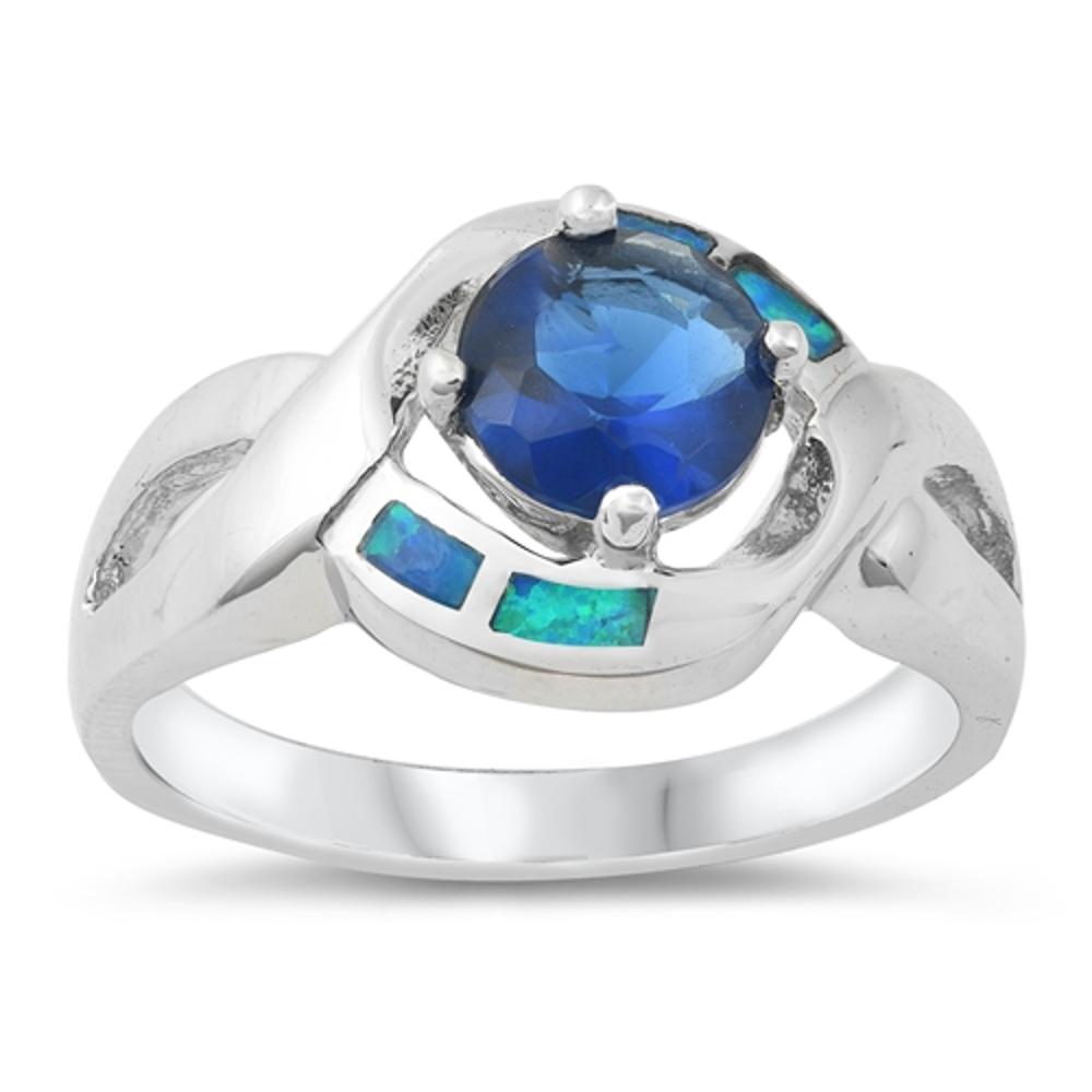 SKU: RO150173 Face Height: 12mm Band Width: 2mm Stone Type: Blue Synthetic OpalStone Type: Blue CZMetal: 925 Sterling Silver