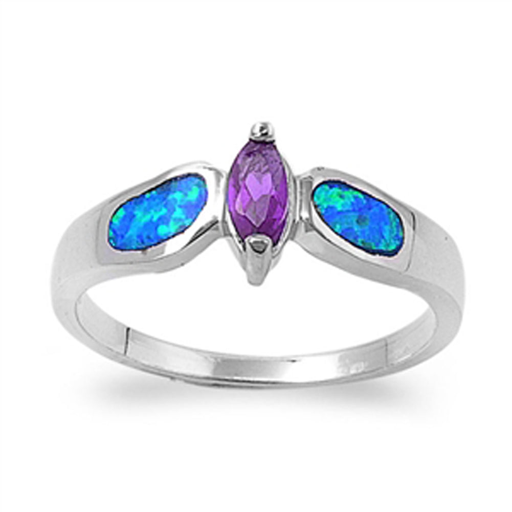 SKU: RO150329 Face Height: 7mm Stone Type: Blue Synthetic OpalStone Type: Purple CZMetal: 925 Sterling Silver
