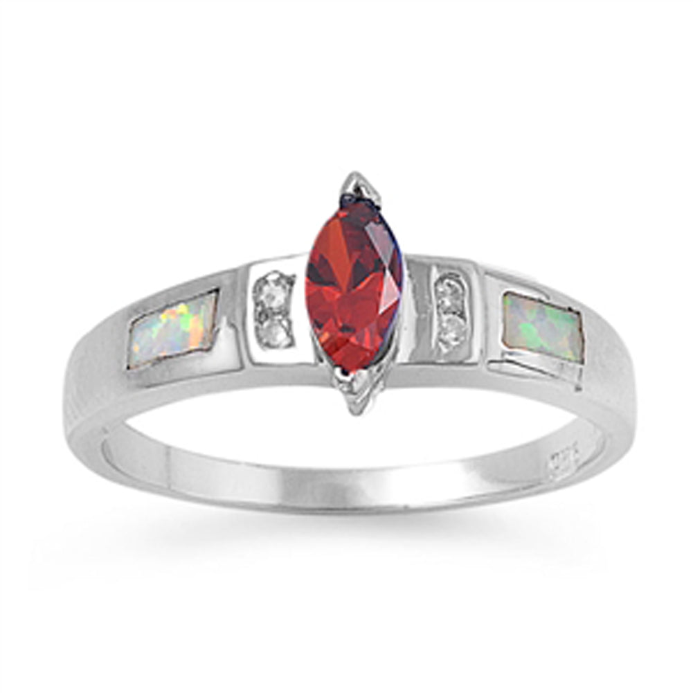 SKU: RO150335 Face Height: 6mm Stone Type: White Synthetic OpalStone Type: Red CZMetal: 925 Sterling Silver