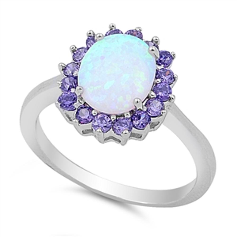 SKU: RO150390 Face Height: 14mm Stone Type: White Synthetic OpalStone Type: Purple CZMetal: 925 Sterling Silver