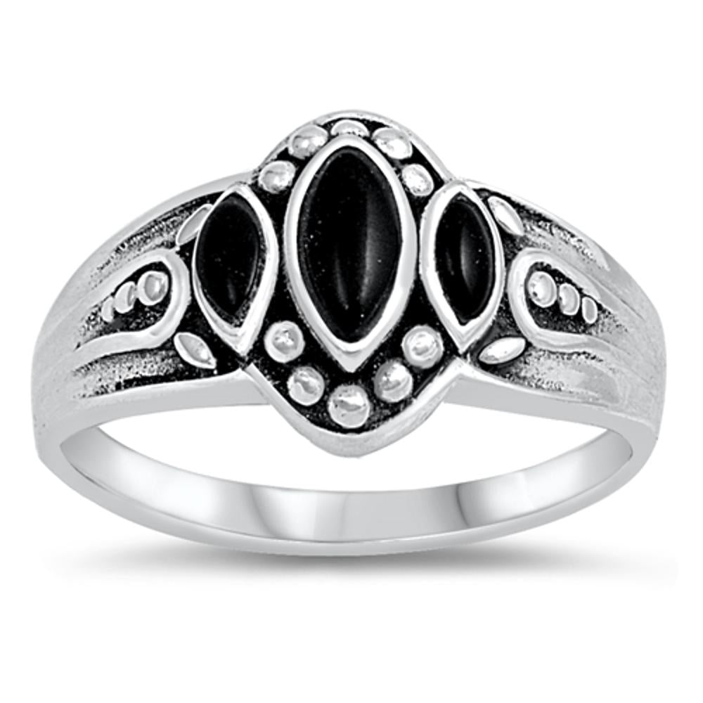 SKU: RS130311-ON Face Height: 11mm Band Width: 2mm Stone Type: Simulated OnyxMetal: 925 Sterling Silver