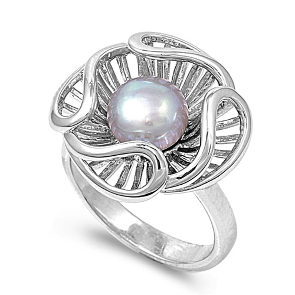 SKU: RS130414 Face Height: 13mm Band Width: 5mm Stone Type: Simulated PearlMetal: 925 Sterling Silver