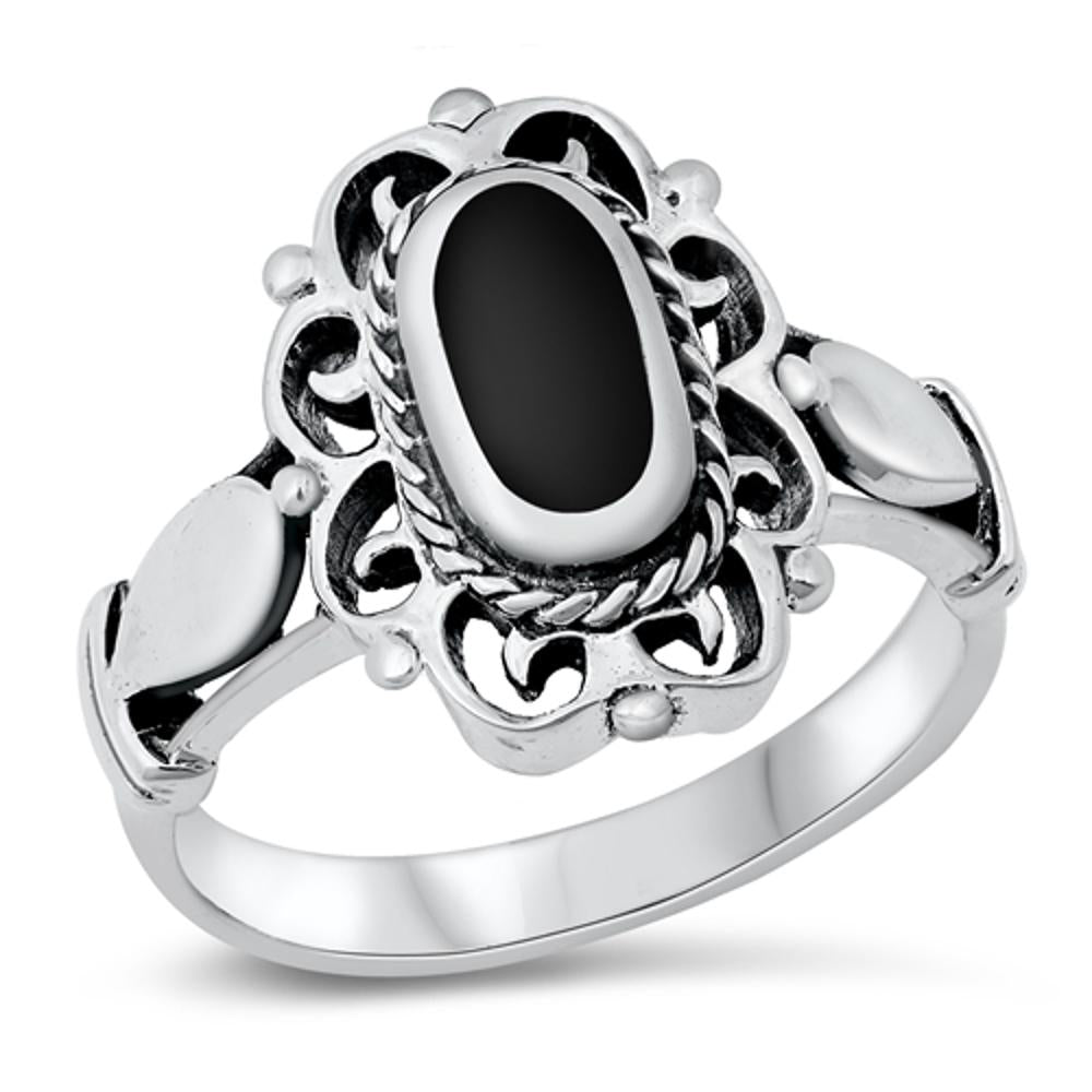 SKU: RS130452-ON Face Height: 17mm Band Width: 3mm Stone Type: Simulated OnyxMetal: 925 Sterling Silver