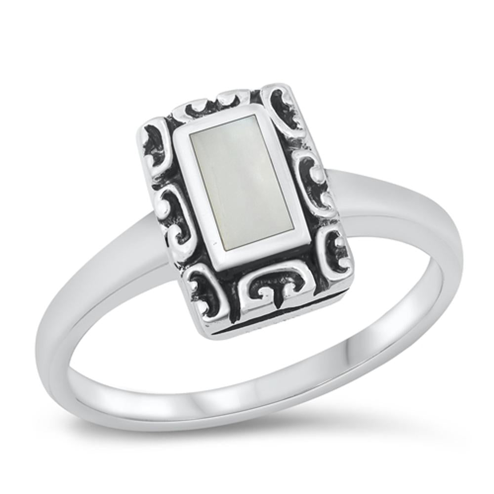SKU: RS130500-MP Face Height: 11mm Band Width: 2mm Stone Type: Mother of PearlMetal: 925 Sterling Silver