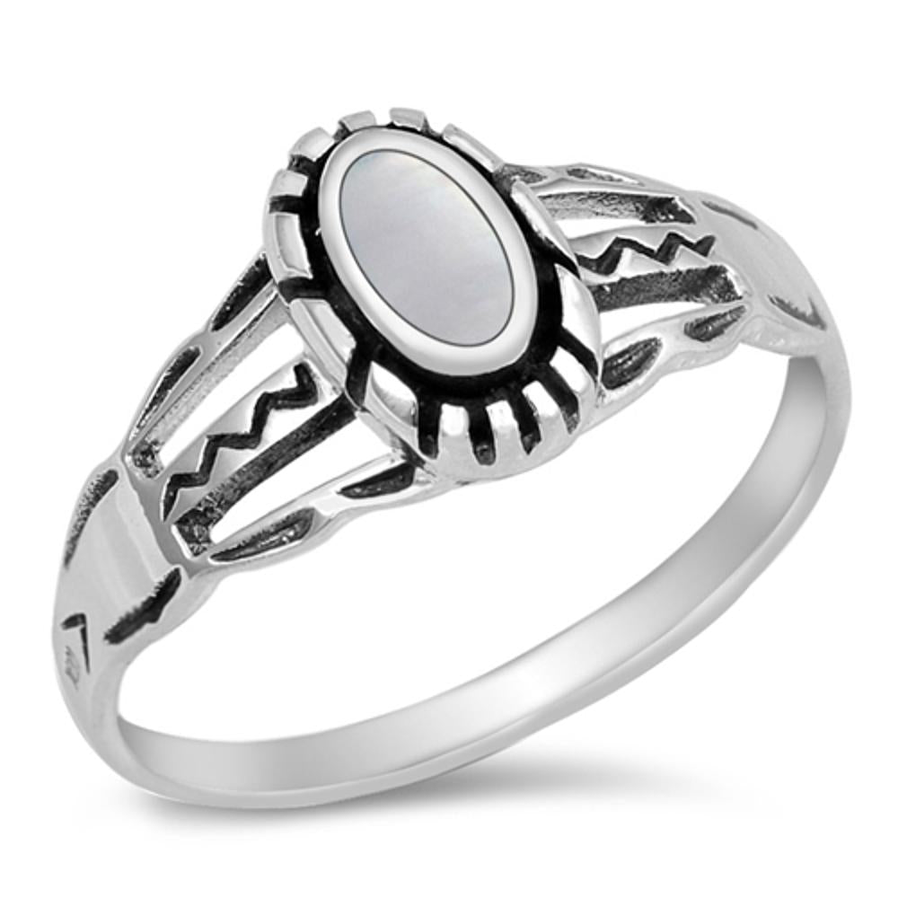 SKU: RS130521-MP Face Height: 9mm Band Width: 2mm Stone Type: Mother of PearlMetal: 925 Sterling Silver