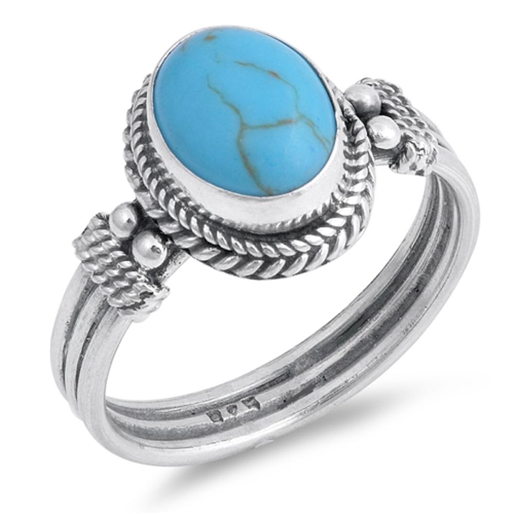 SKU: RS130746 Face Height: 13mm Stone Type: Simulated TurquoiseMetal: 925 Sterling Silver