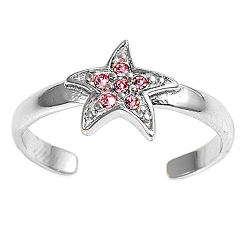 Sterling Silver Beautiful Pink CZ Starfish Toe Ring Adjustable Beach Midi Band
