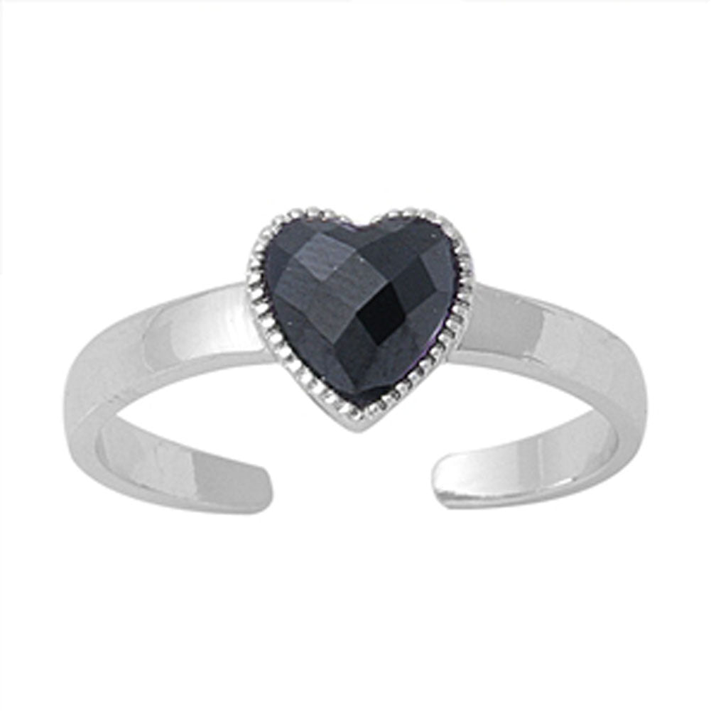 Solitaire Heart Black Simulated CZ .925 Sterling Silver Toe Ring