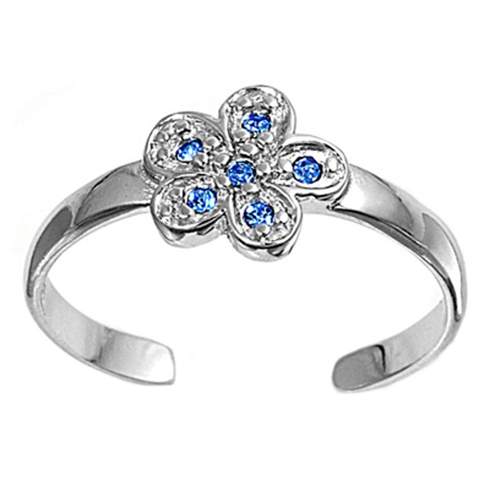 Flower Blue Simulated Sapphire .925 Sterling Silver Toe Ring