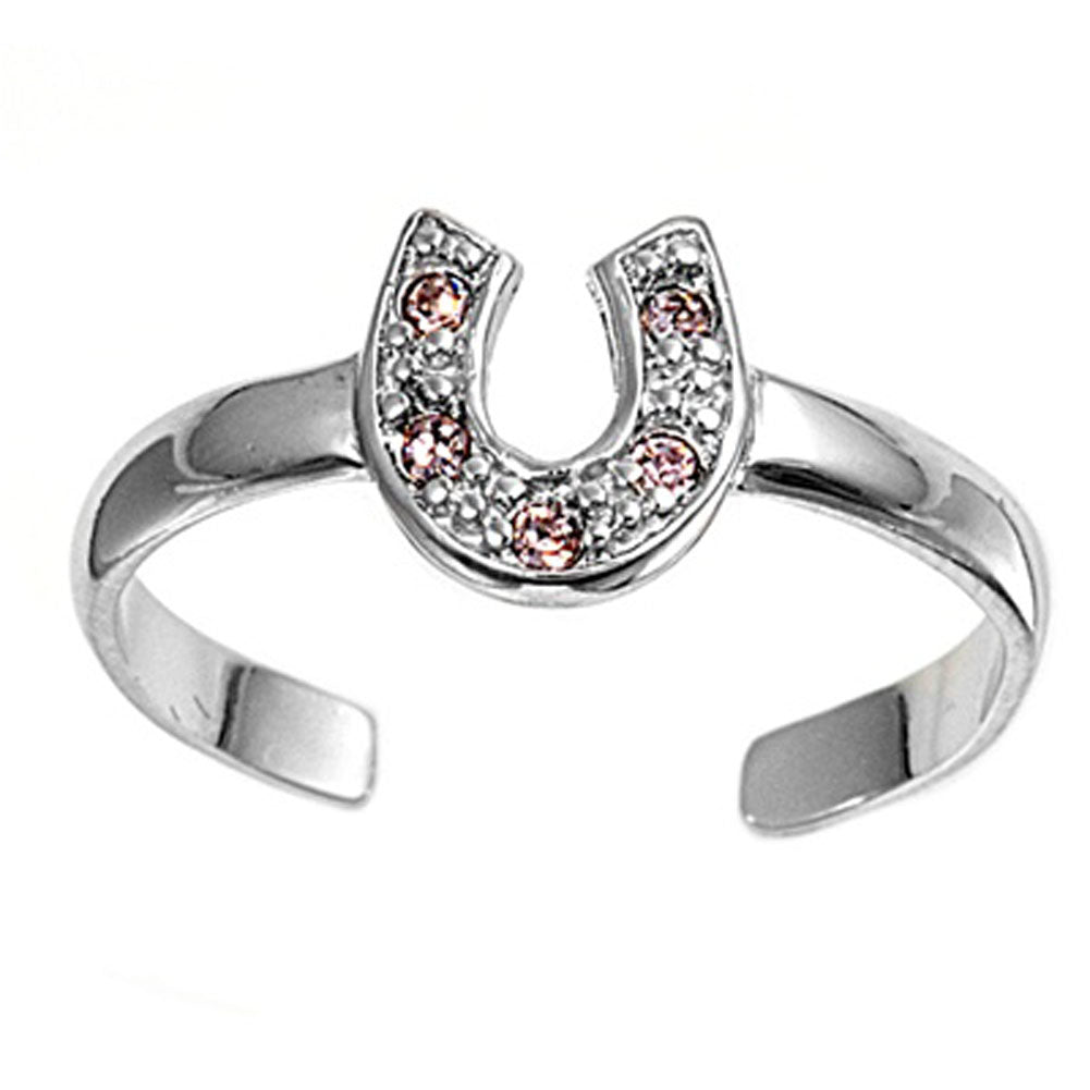 Horseshoe Pink Simulated CZ .925 Sterling Silver Toe Ring