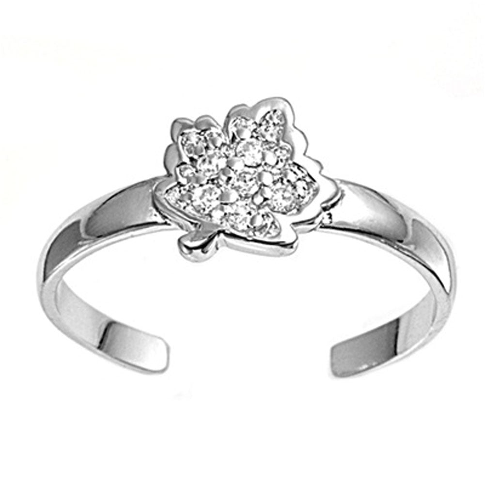 Leaf Clear Simulated CZ .925 Sterling Silver Toe Ring