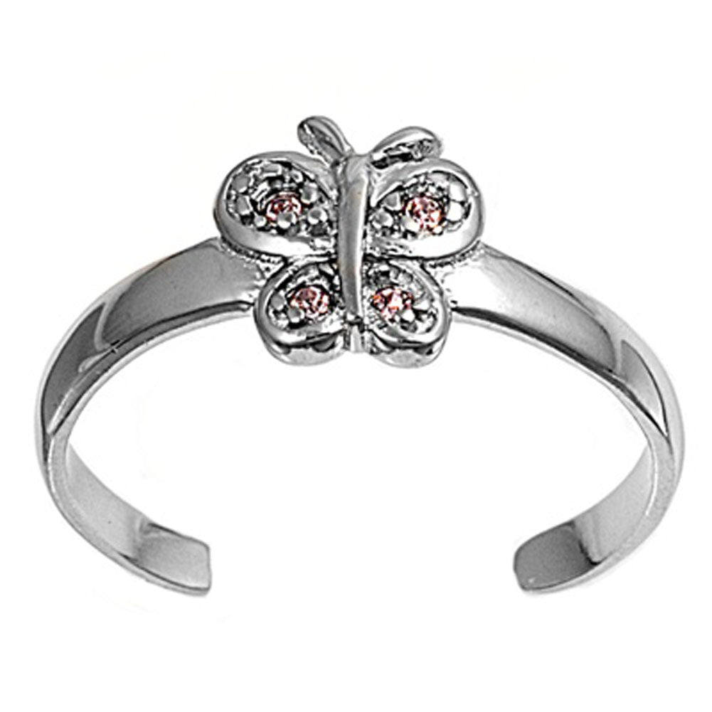 Butterfly Pink Simulated CZ .925 Sterling Silver Toe Ring