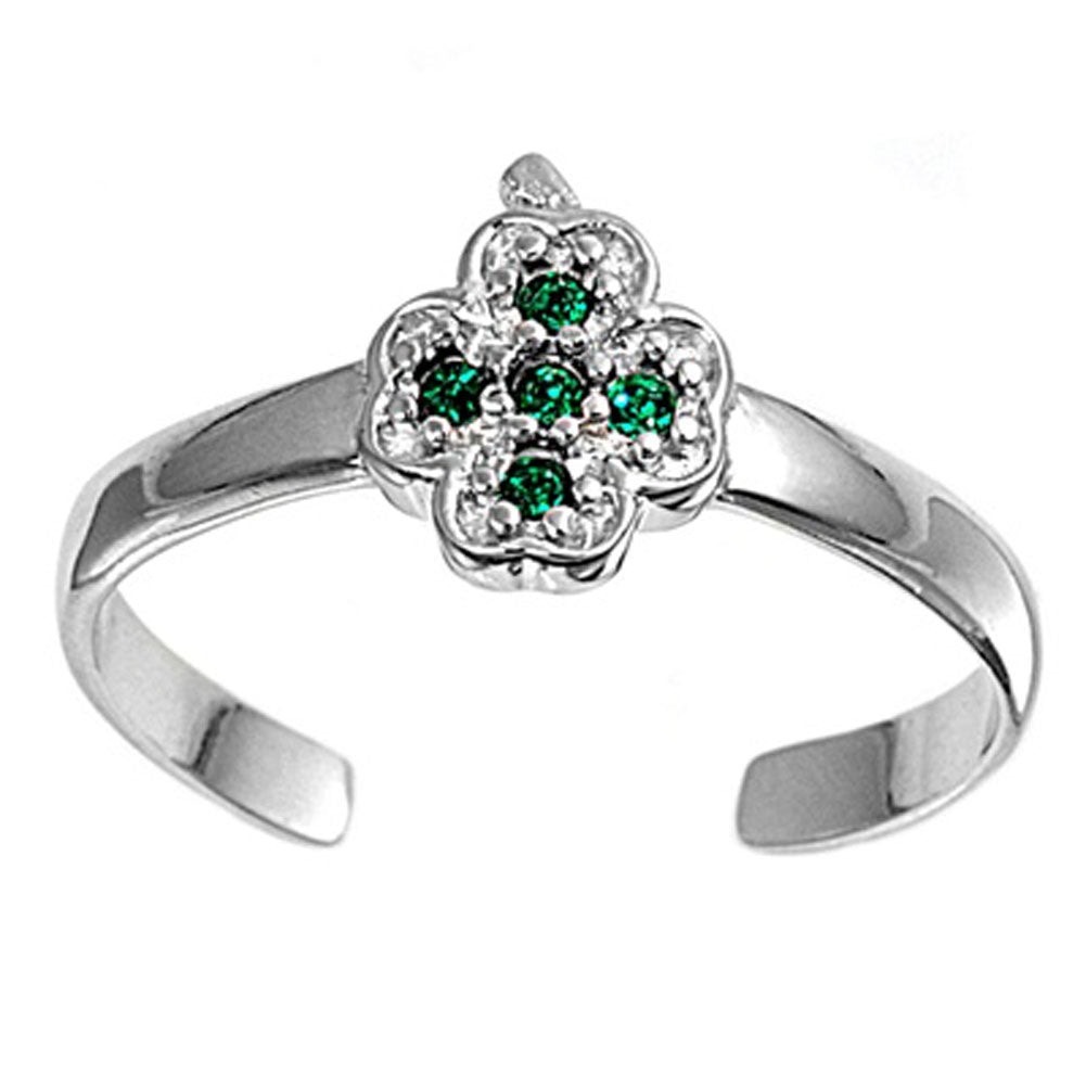 Clover Cross Simulated Emerald .925 Sterling Silver Toe Ring