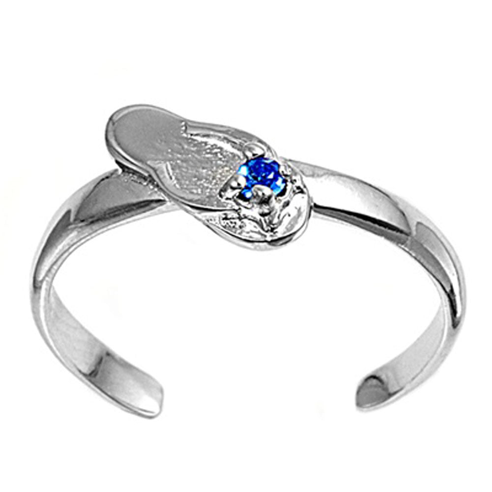 Slipper Flip Flop Blue Simulated Sapphire .925 Sterling Silver Toe Ring