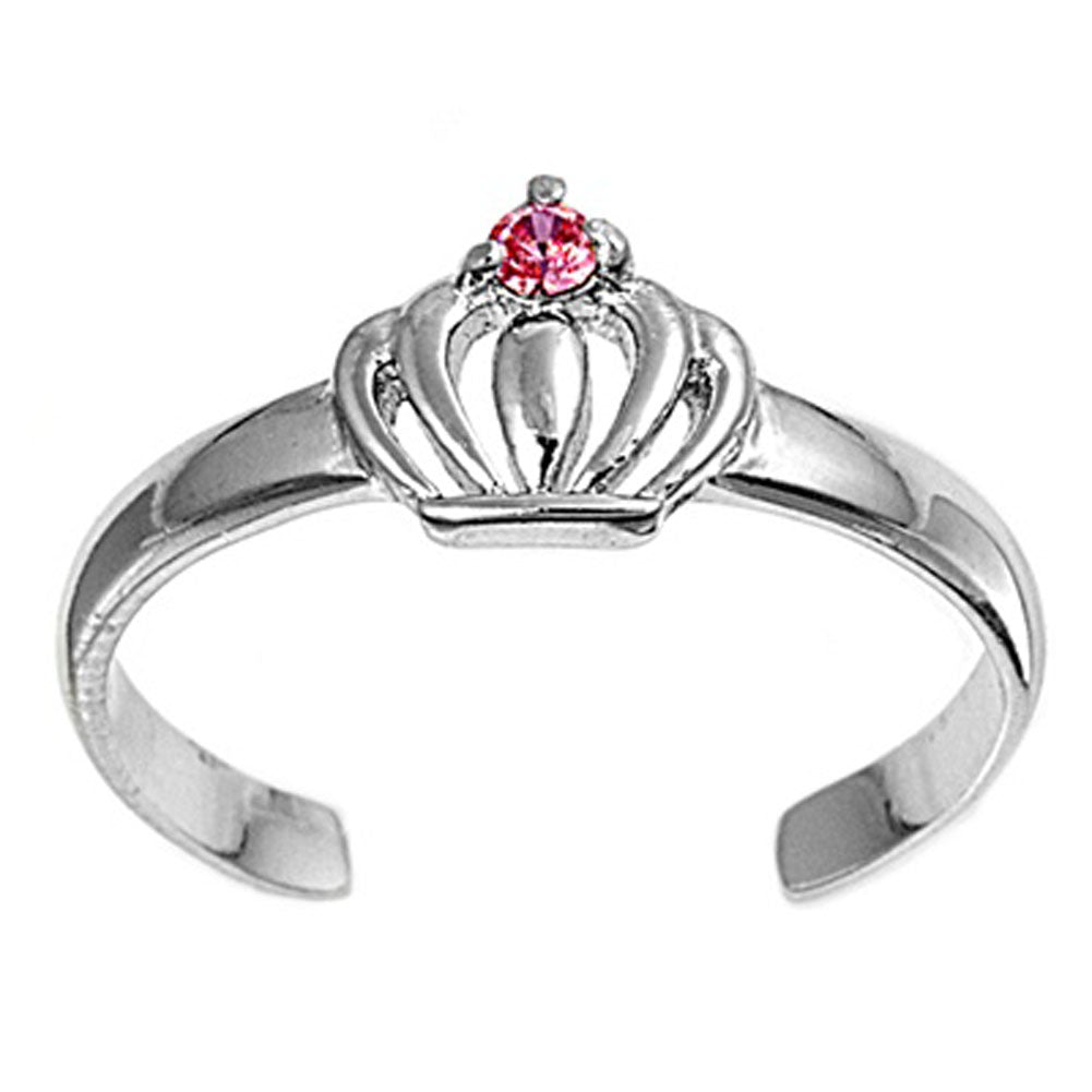 Crown Pink Simulated CZ .925 Sterling Silver Toe Ring
