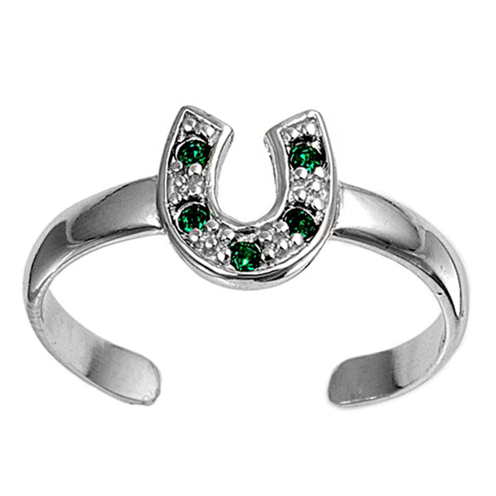 Horseshoe Simulated Emerald .925 Sterling Silver Toe Ring