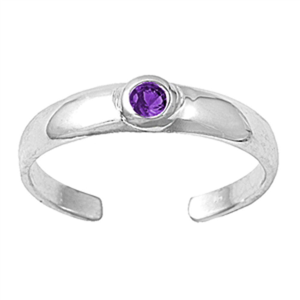 Round Solitaire Simulated Amethyst .925 Sterling Silver Toe Ring