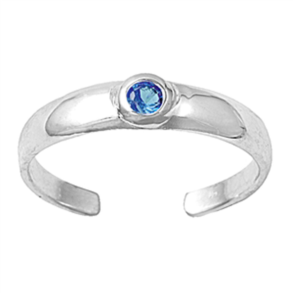 Round Solitaire Simulated Aquamarine .925 Sterling Silver Toe Ring