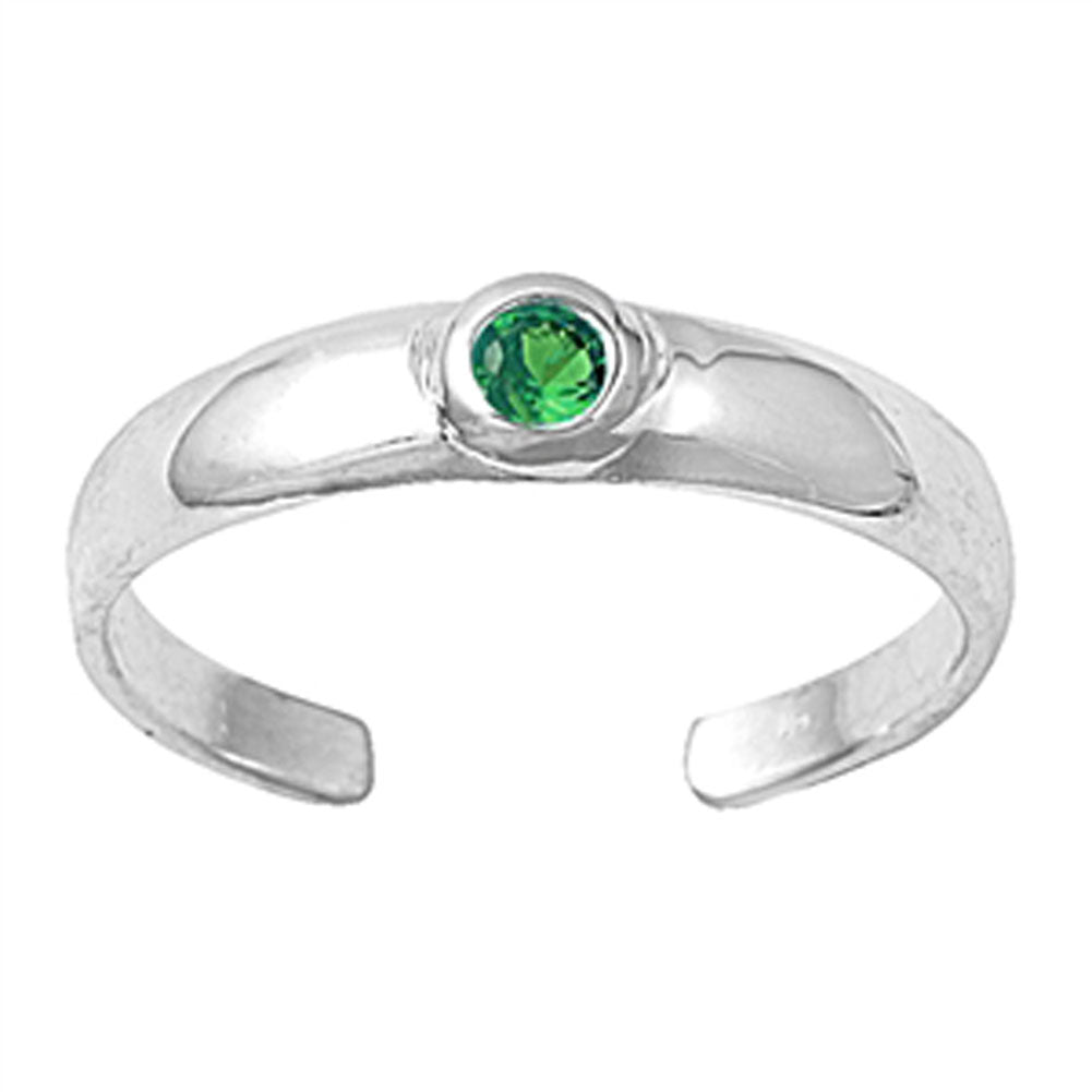 Round Solitaire Simulated Emerald .925 Sterling Silver Toe Ring