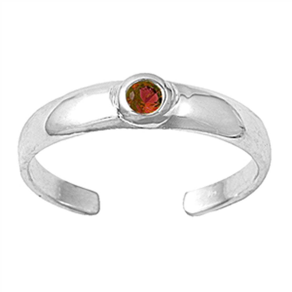 Round Solitaire Simulated Garnet .925 Sterling Silver Toe Ring