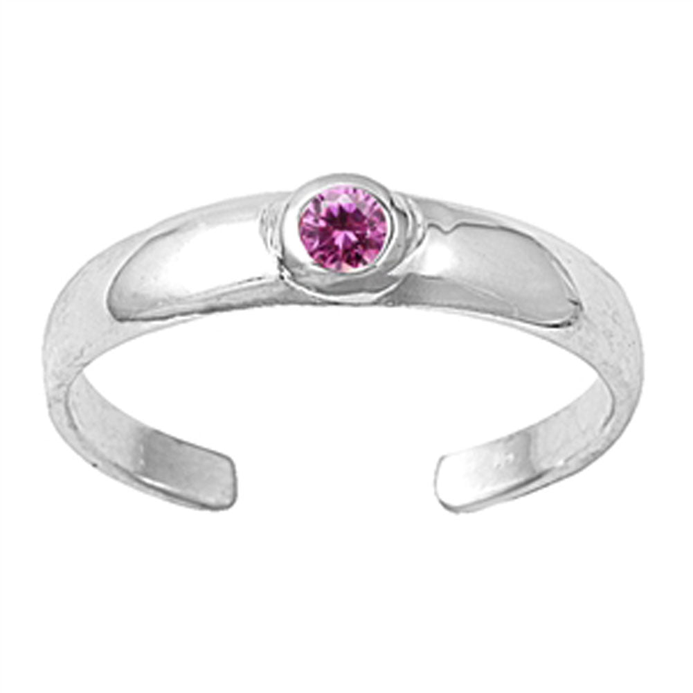 Round Solitaire Pink Simulated CZ .925 Sterling Silver Toe Ring