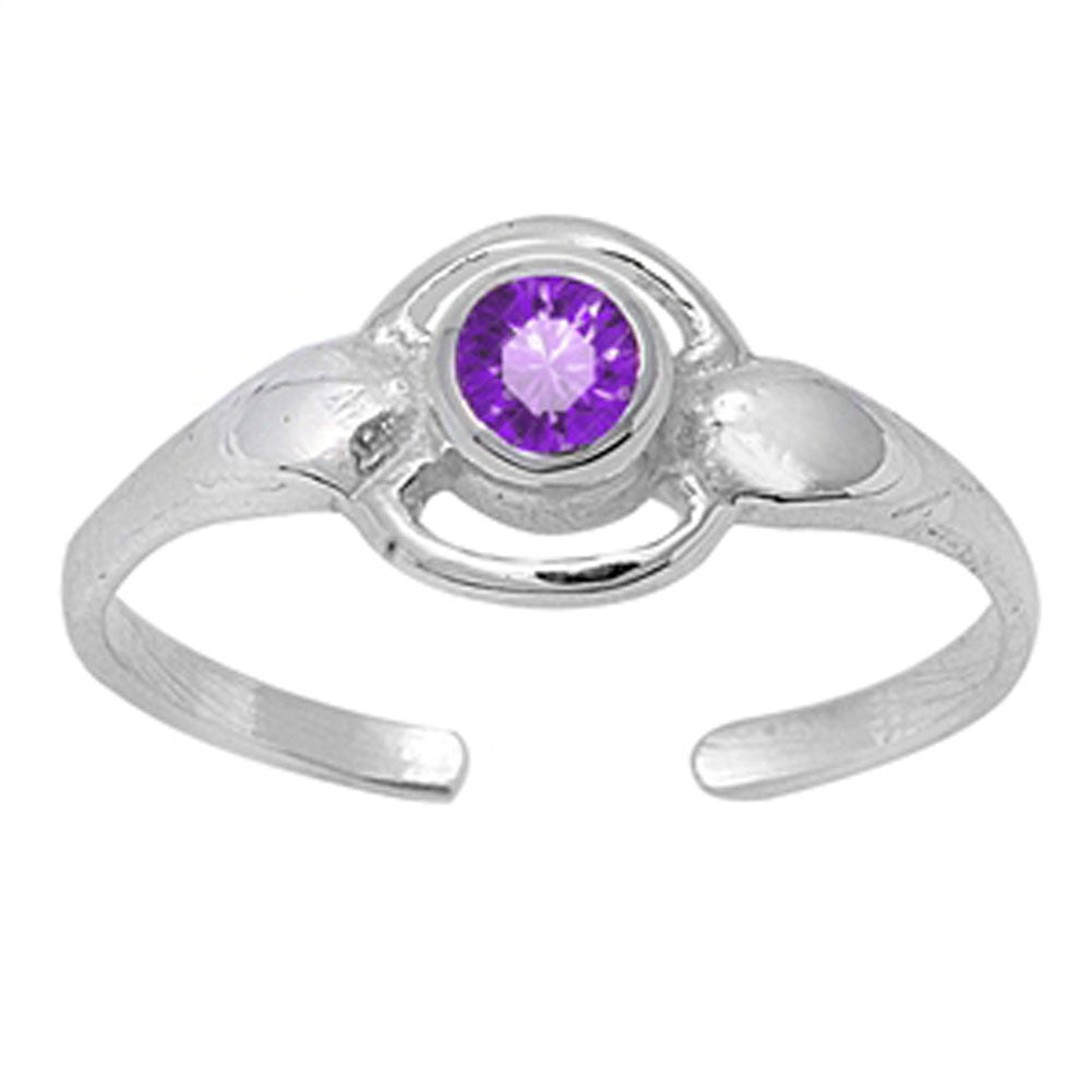 Round Solitaire Simulated Amethyst .925 Sterling Silver Toe Ring