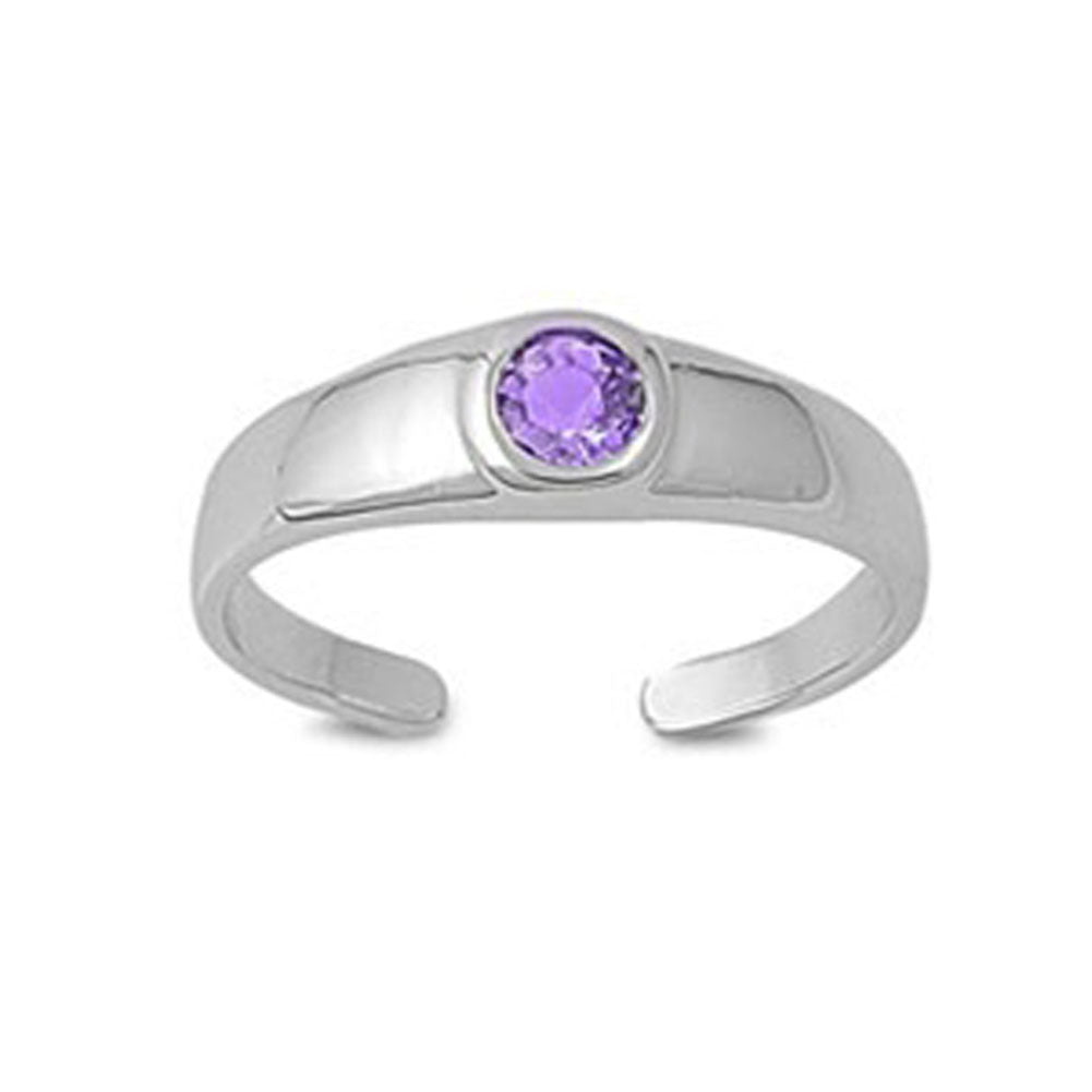 Round Solitaire Simulated Amethyst .925 Sterling Silver Toe Ring