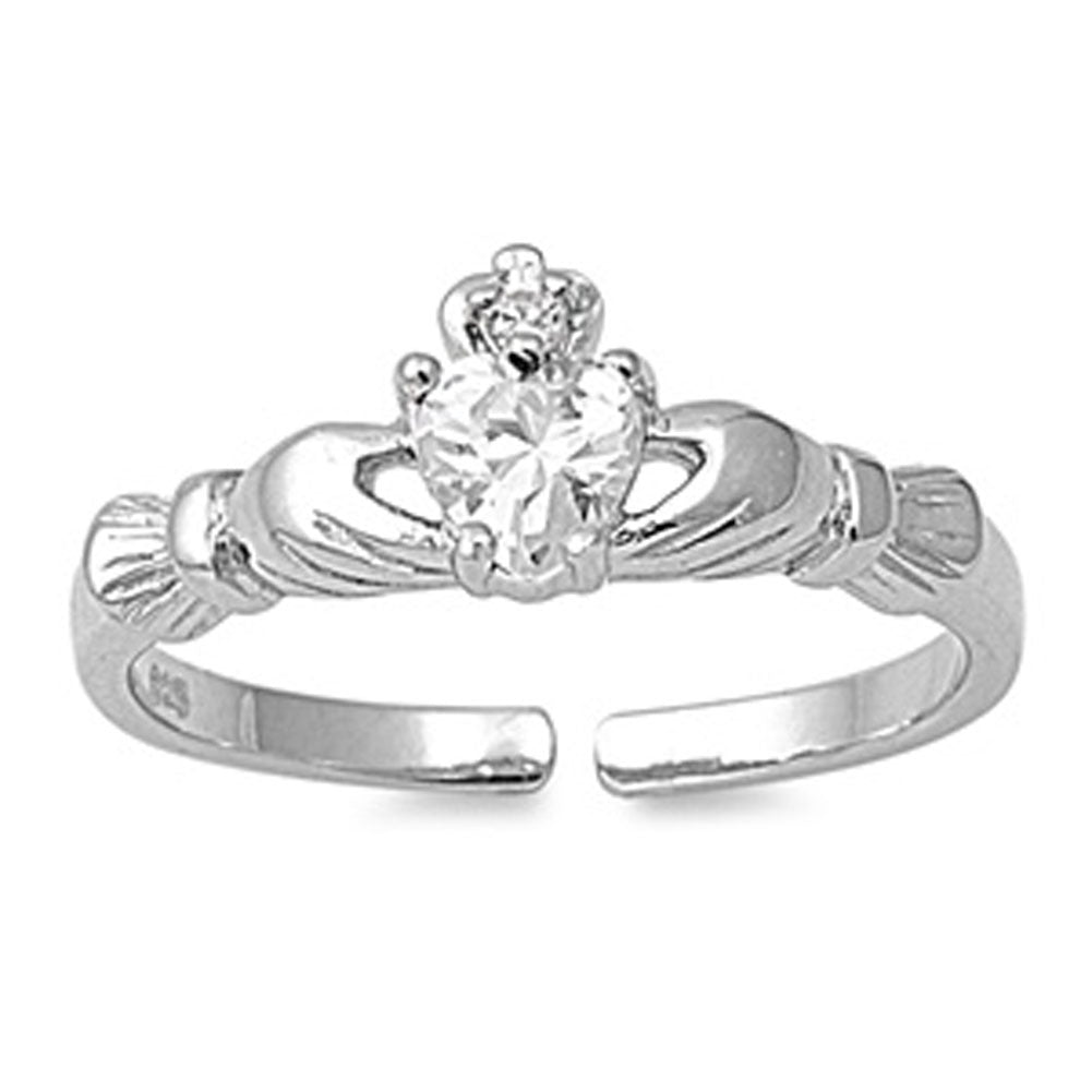 Heart Solitaire Claddagh Clear Simulated CZ .925 Sterling Silver Toe Ring