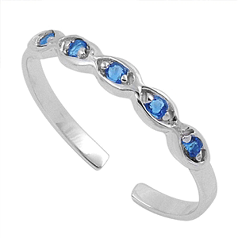 Sterling Silver Promise Blue Sapphire CZ Toe Ring Adjustable Fashion Midi Band