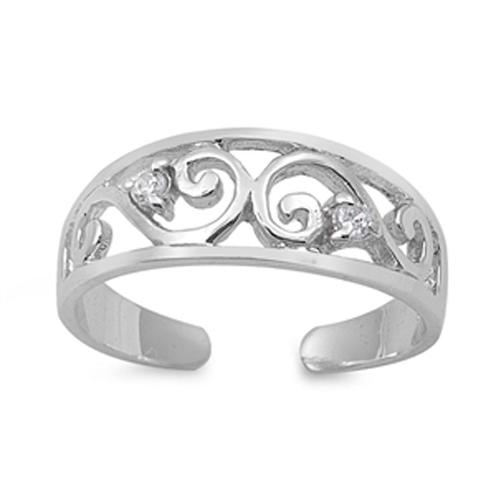 Infinity Swirl Clear Simulated CZ .925 Sterling Silver Toe Ring