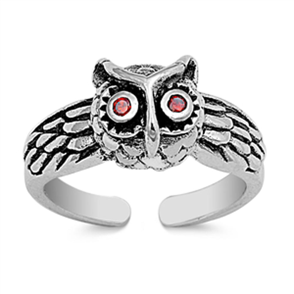 Sterling Silver Polished Owl Garnet CZ Toe Ring Adjustable Midi Band .925 New
