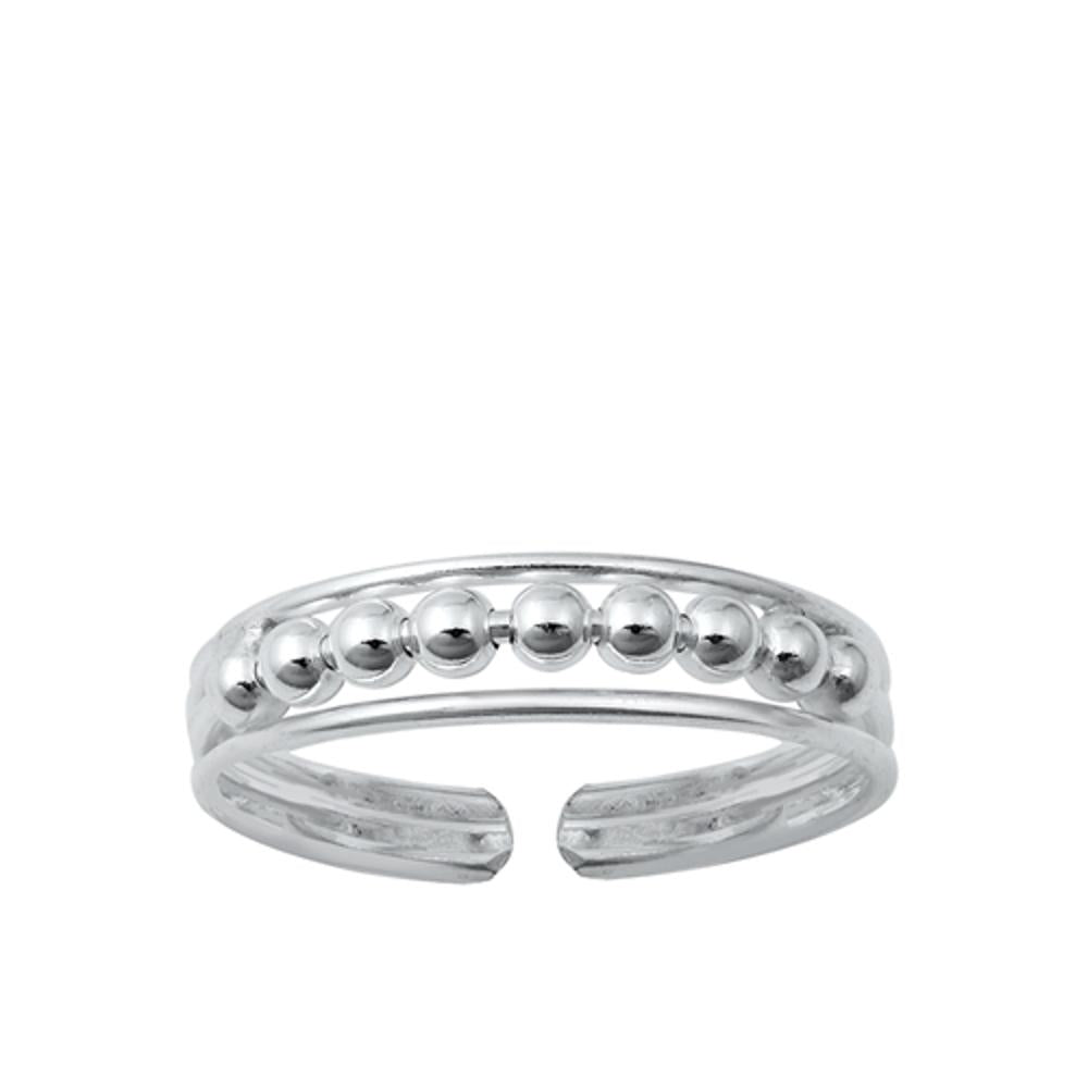 Sterling Silver Beautiful Ball Bead Toe Ring Polished Adjustable Midi Band 925