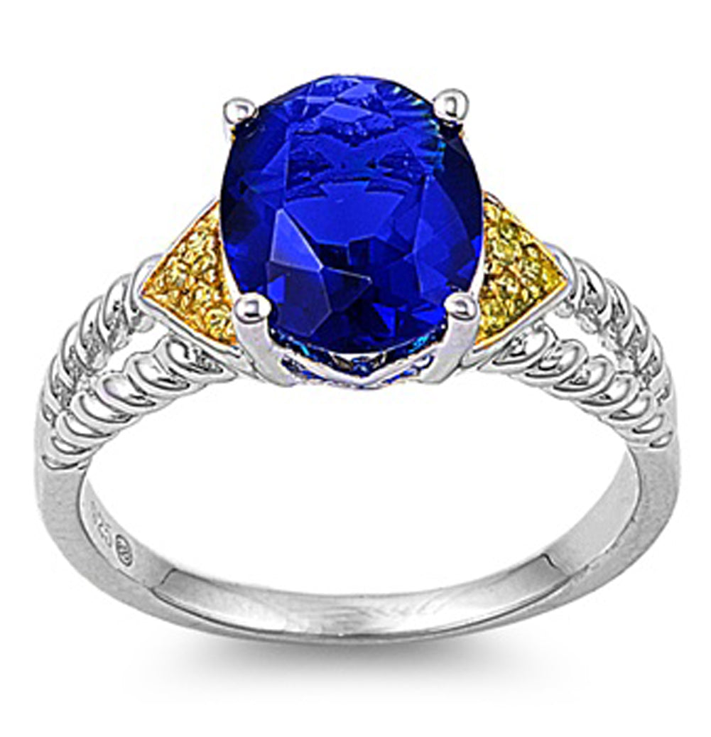 SKU: RC104107 Face Height: 9mm Band Width: 2mm Stone Type: Blue CZMetal: 925 Sterling Silver