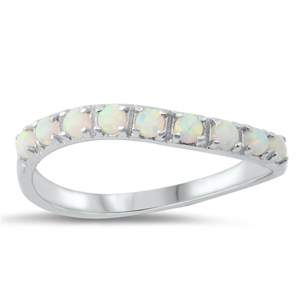 White Lab Opal Asymmetric Wave Promise Ring New .925 Sterling Silver Sizes 4-10