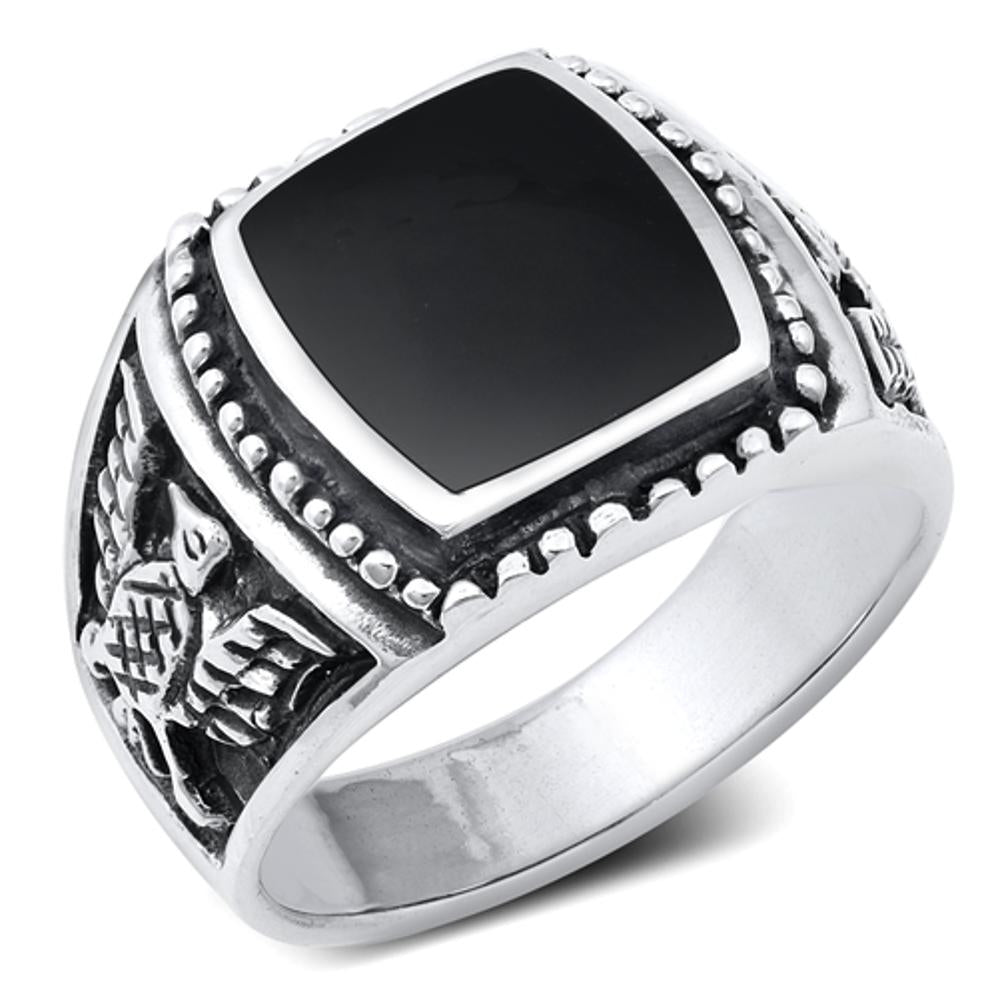 SKU: RS130960-ON Face Height: 15mm Stone Type: Simulated OnyxMetal: 925 Sterling Silver